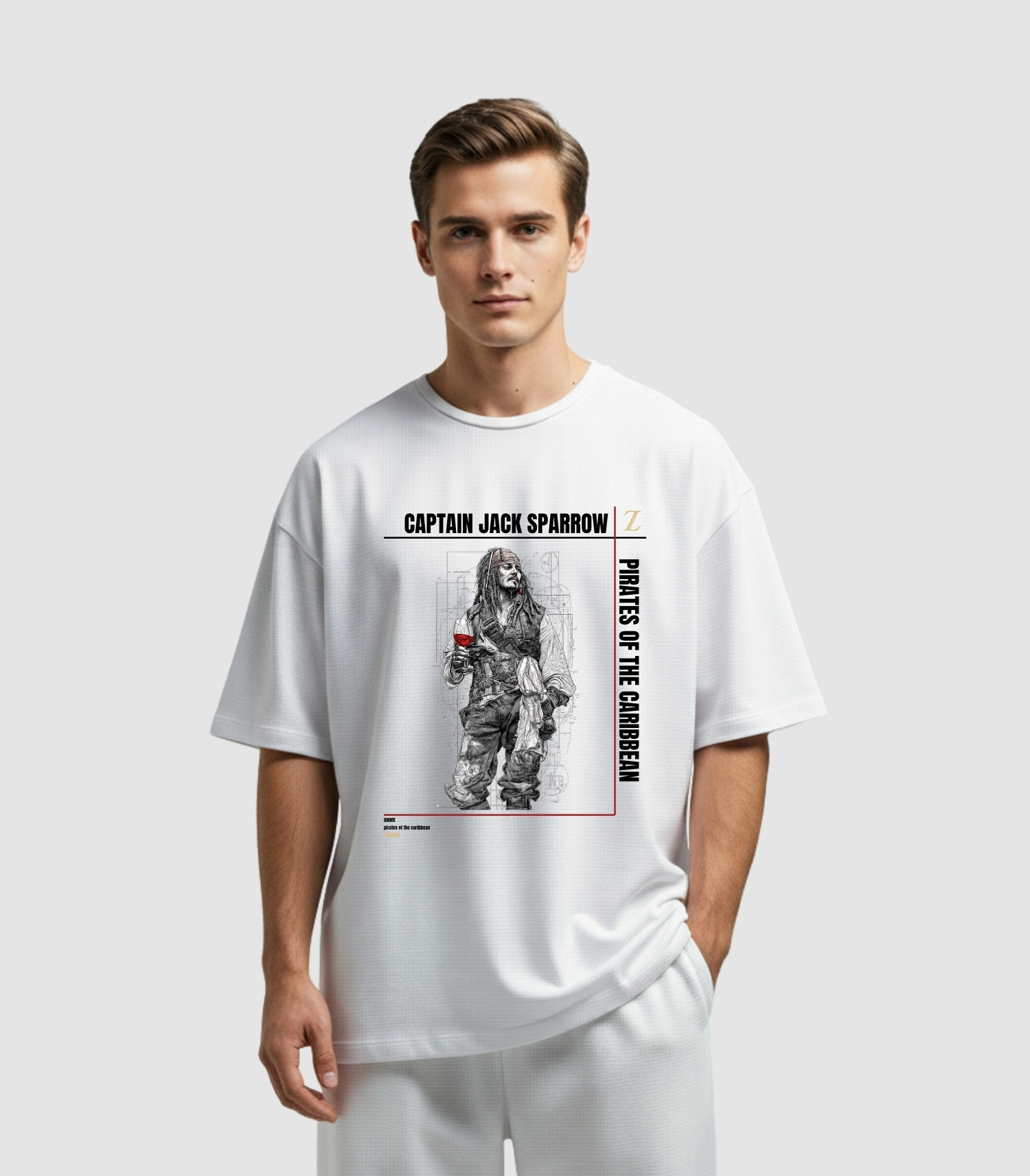 اوج هماهنگی در طراحی و کیفیت پارچه. یک کشتی، یک افق و طعمی از آزادی. طرحی برای افسانه‌ای‌ترین دزد دریایی کارائیب. برش دقیق از پنبه‌ی سنگین و اعلا، یک فیت مدرن و خوش‌فرم را تضمین می‌کند. کیفیتی ملموس که در هر نگاه و لمس، خود را نشان می‌دهد.